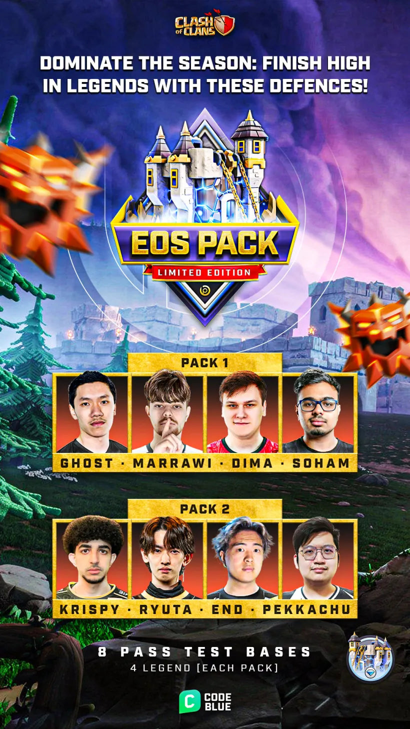 The EoS Ranked Mode Base Pack is built specifically for end-of-season pushing, where players spam their most optimized armies and rely on fully solved attack patterns. These layouts are engineered to break that late-season confidence and turn predictable hits into costly failures.